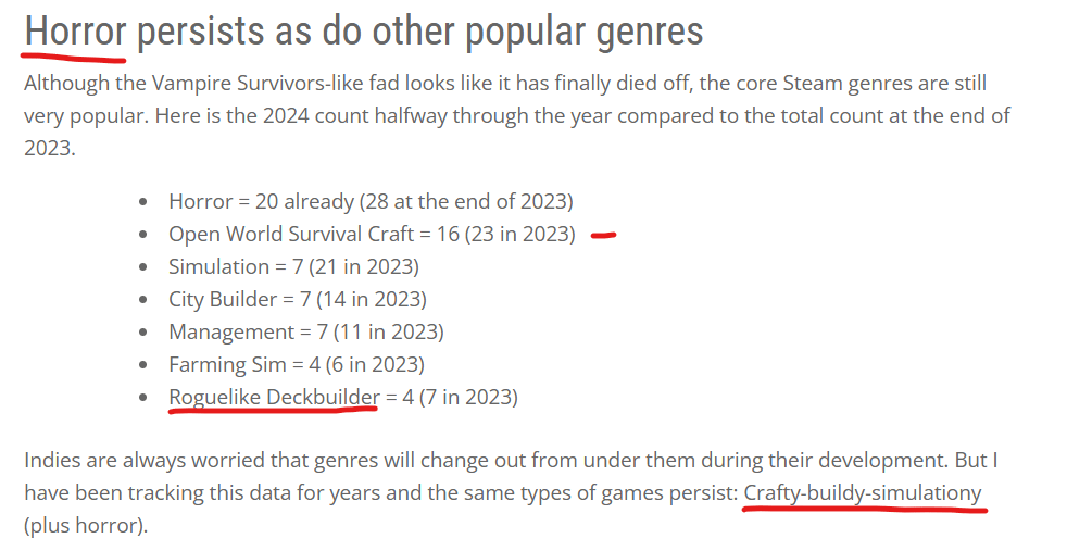 Some time around Q2 2024 he has written up a blog post on what kinds of games were doing well